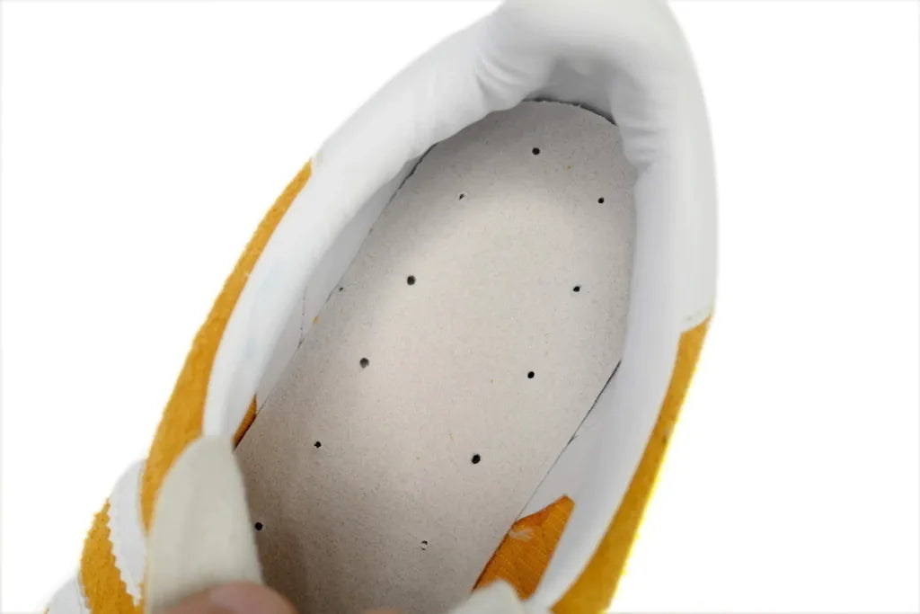 The Adidas Gazelle Indoor - Orange lights up the iconic silhouette with a bold splash of color. Built with a rich orange suede upper, this edition is accented by crisp white serrated Three Stripes and a matching white heel tab. The golden “GAZELLE” lettering adds that authentic retro touch, while the translucent gum sole stays true to the indoor classic heritage.