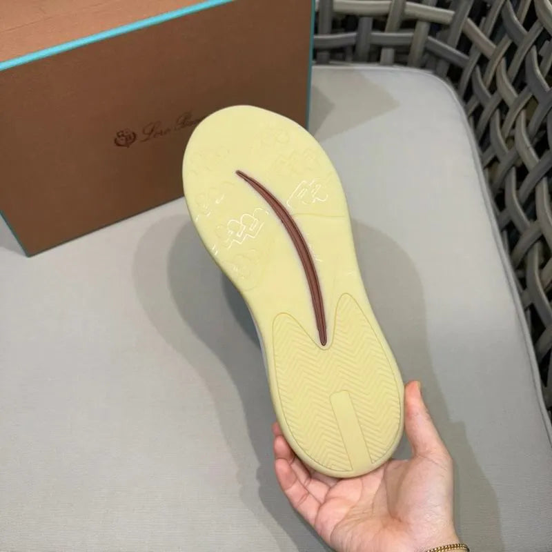 The Loro Piana 360 Flexy Walk Sneakers combine refined craftsmanship with contemporary comfort. Made from soft navy suede and breathable technical fabric, the design ensures lightness and flexibility for everyday wear. The ultra-light rubber sole provides excellent cushioning and grip, while leather lining adds a touch of luxury. Finished with subtle Loro Piana detailing, these sneakers are perfect for elevating casual looks with timeless sophistication.