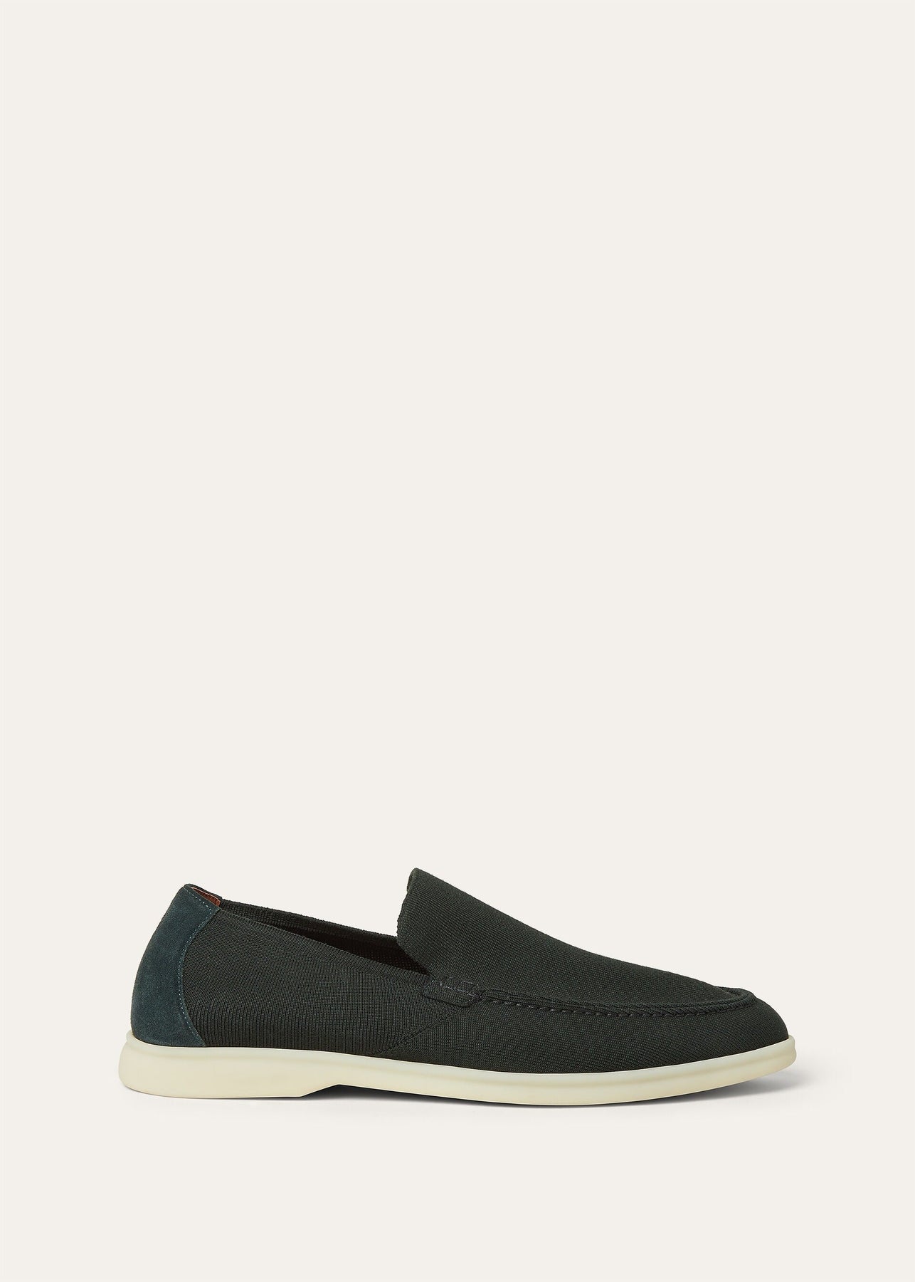 Loro Piana loafers crafted from knitted Wish® wool. The uppers are woven on a loom, just like a jumper, before being joined to the rubber soles. Finished with a water-repellent Rain System® treatment and refined suede details, this style combines innovation with understated elegance.