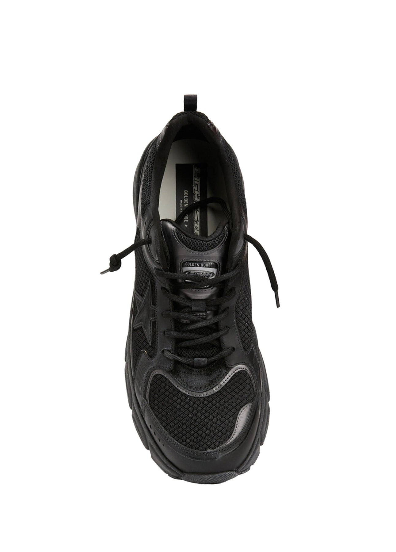 The Golden Goose Lightstar Black Leather Mesh blends performance-inspired design with the brand’s iconic aesthetic. Made in Italy, it features a mix of mesh and calf leather with layered panels, tonal laces, and the signature star patch. The chunky rubber sole ensures comfort and durability, while the all-black finish delivers a bold, modern edge. Perfect for those who want Golden Goose craftsmanship in a sportier silhouette.