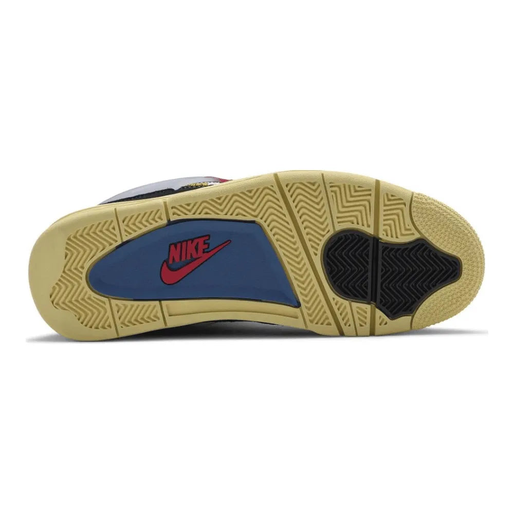 The Jordan 4 Retro Union Off Noir follows Union LA’s highly sought-after 2018 collaboration on the Air Jordan 1, bringing a fresh update to the AJ4. The upper combines black suede with matching mesh on the toe box and blue mesh around the collar. Semi-translucent structural wings connect to molded red eyelets, complemented by a woven Air Jordan tag on the padded tongue and classic Nike Air branding on the heel. Filled TPU wings nod to one of Tinker Hatfield’s original AJ4 sketches, while the inside-out tongue label adds a unique twist, as if flipped to expose its inner tag. A “UN/LA” tab on the side panel highlights the Union heritage, while a yellowed midsole gives the sneaker a vintage aesthetic.