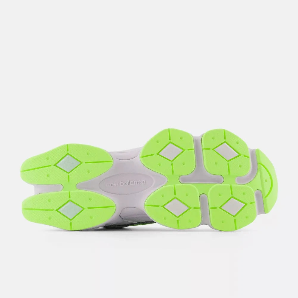 The New Balance 9060 White Silver Metallic Taro brings a futuristic twist to everyday wear. Featuring a sleek white mesh base with metallic silver overlays, the pair is accented by vibrant neon green details and a lilac-toned midsole for a bold contrast. With ABZORB and SBS cushioning underfoot, this sneaker blends retro-inspired design with modern innovation, delivering comfort and standout style in one package.